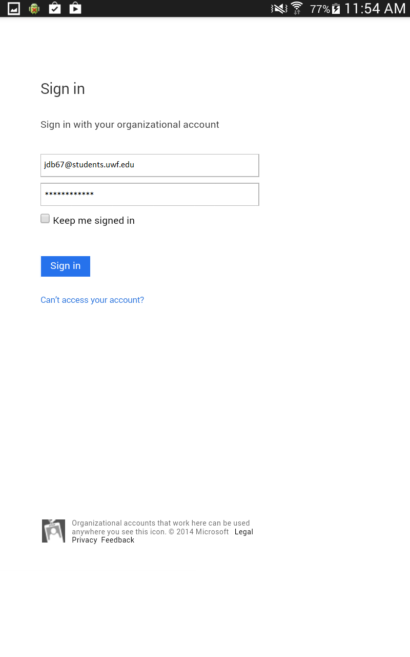 - Login with your full @students.uwf.edu email address and ArgoNet password