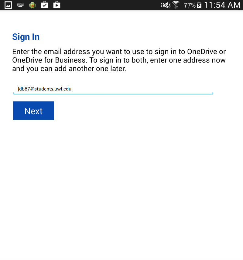 - Enter your full @students.uwf.edu UWF email address and select Next