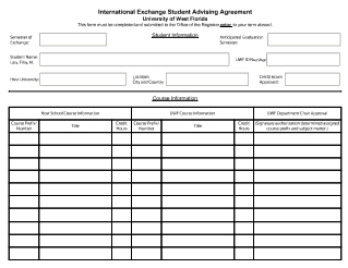 International Exchange Advising Agreement is required for students studying with one of UWF's partner institutions for exchange credit.
