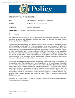To establish University of West Florida policies and procedures for approving, classifying, operating, reviewing, and disbanding institutes and centers in the State University System Inventory of Institutes and Centers