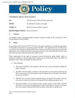 To establish a policy concerning public comment at public meetings of the University of West Florida Board of Trustees (BOT).