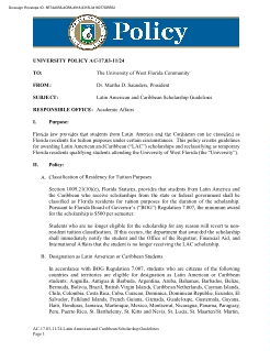 | Abstract | Florida law provides that students from Latin America and the Caribbean can be classified as Florida residents for tuition purposes under certain circumstances. This policy creates guidelines for awarding Latin American and Caribbean (“LAC”) scholarships and reclassifying as temporary Florida residents qualifying students attending the University of West Florida (the “University”). |