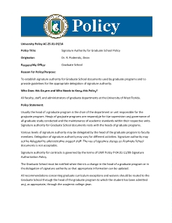 AbstractTo establish signature authority for Graduate School documents used by graduate programs and to provide guidelines for the appropriate delegation of signature authority.