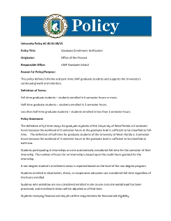 This policy defines full-time and part-time UWF graduate students and supports the University's continued growth and retention.