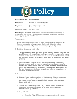 In order to maintain a safe academic environment, the University of West Florida prohibits the use, storage and possession of weapons on University property, with limited exceptions, to the extent permitted by Florida law.