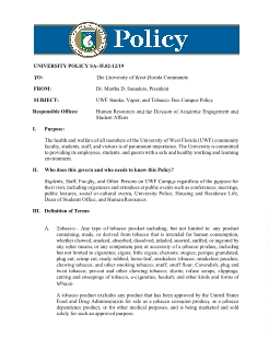 | Abstract | The health and welfare of all members of the University of West Florida (UWF) community faculty, students, staff, and visitors is of paramount importance. The University is committed to providing its employees, students, and guests with a safe and healthy working and learning environment. |