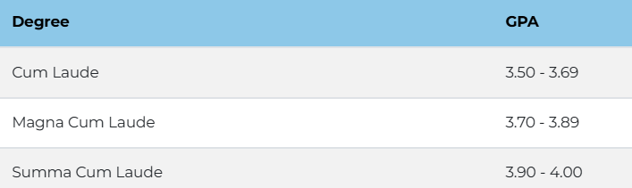 Please see the Baccalaureate Honors portion of the Undergraduate Academic Catalog for specific information used to determine baccalaureate honors. Please note that the honors indicated on the commencement program are tentative since current semester courses are not included.