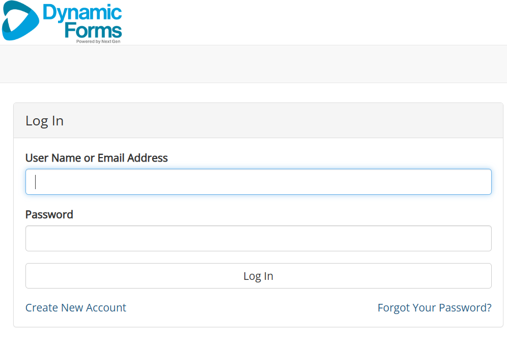 If this is the first time you are logging in, you have to create an external Dynamic Forms account.